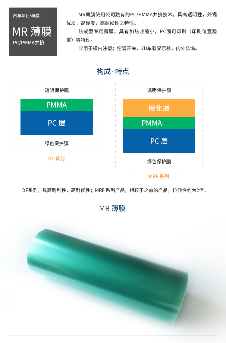 【MR薄膜系列(DF/MRF)】:用于模内注塑,空调开光,3D车载显示器,内外装饰等